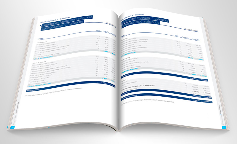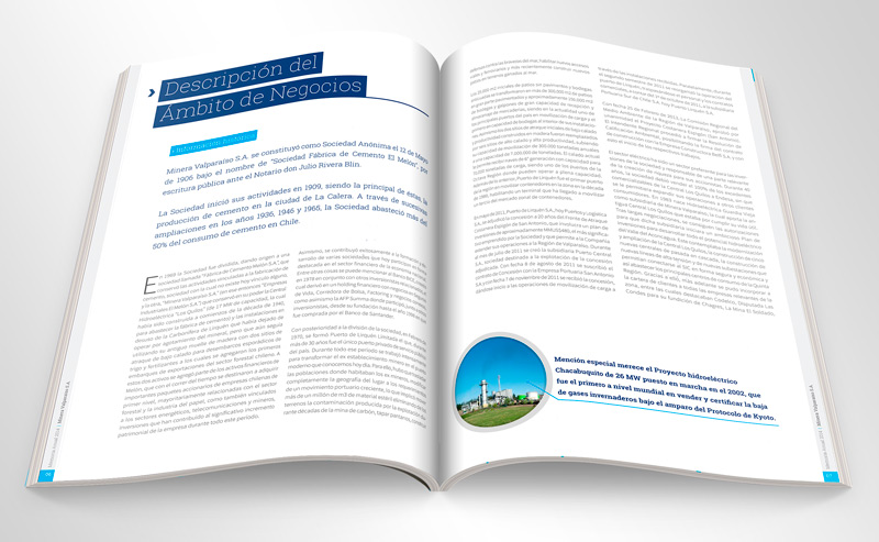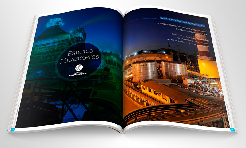 Concepto, diseño y producción de Memoria Anual Minera Valparaíso 2014.