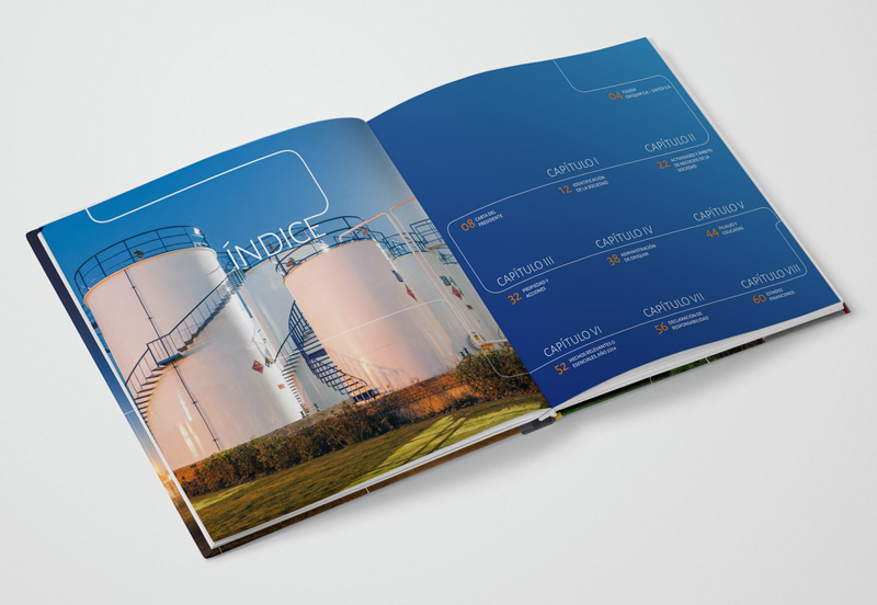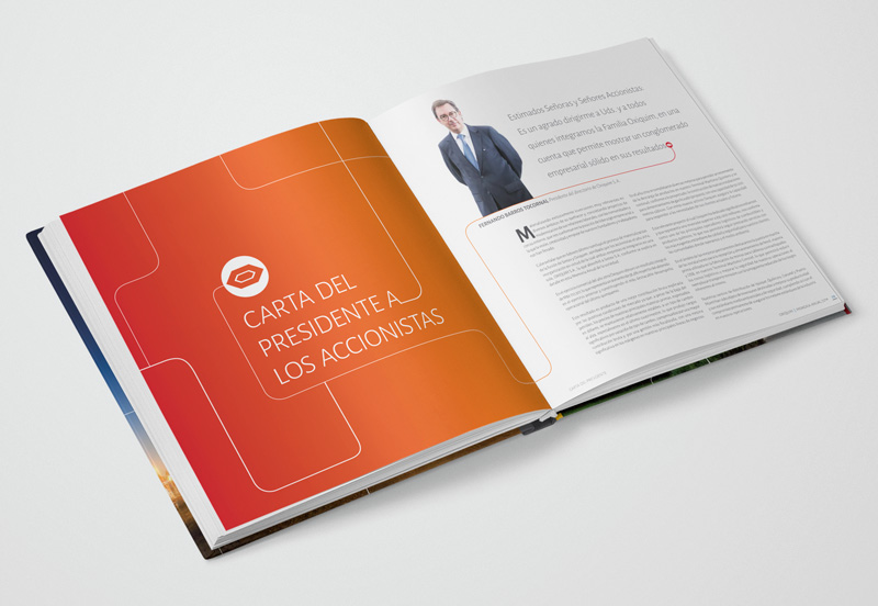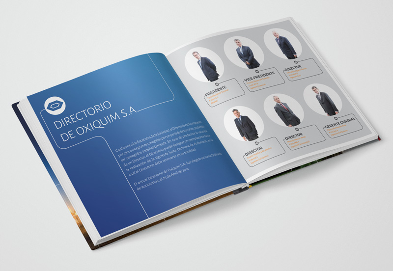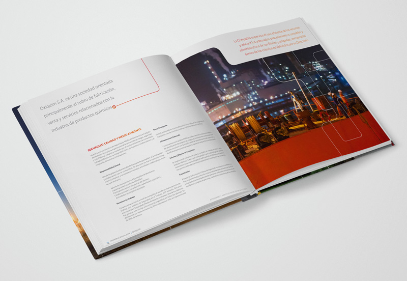 Concepto, diseño y producción de Memoria Anual Oxiquim S.A. 2014.